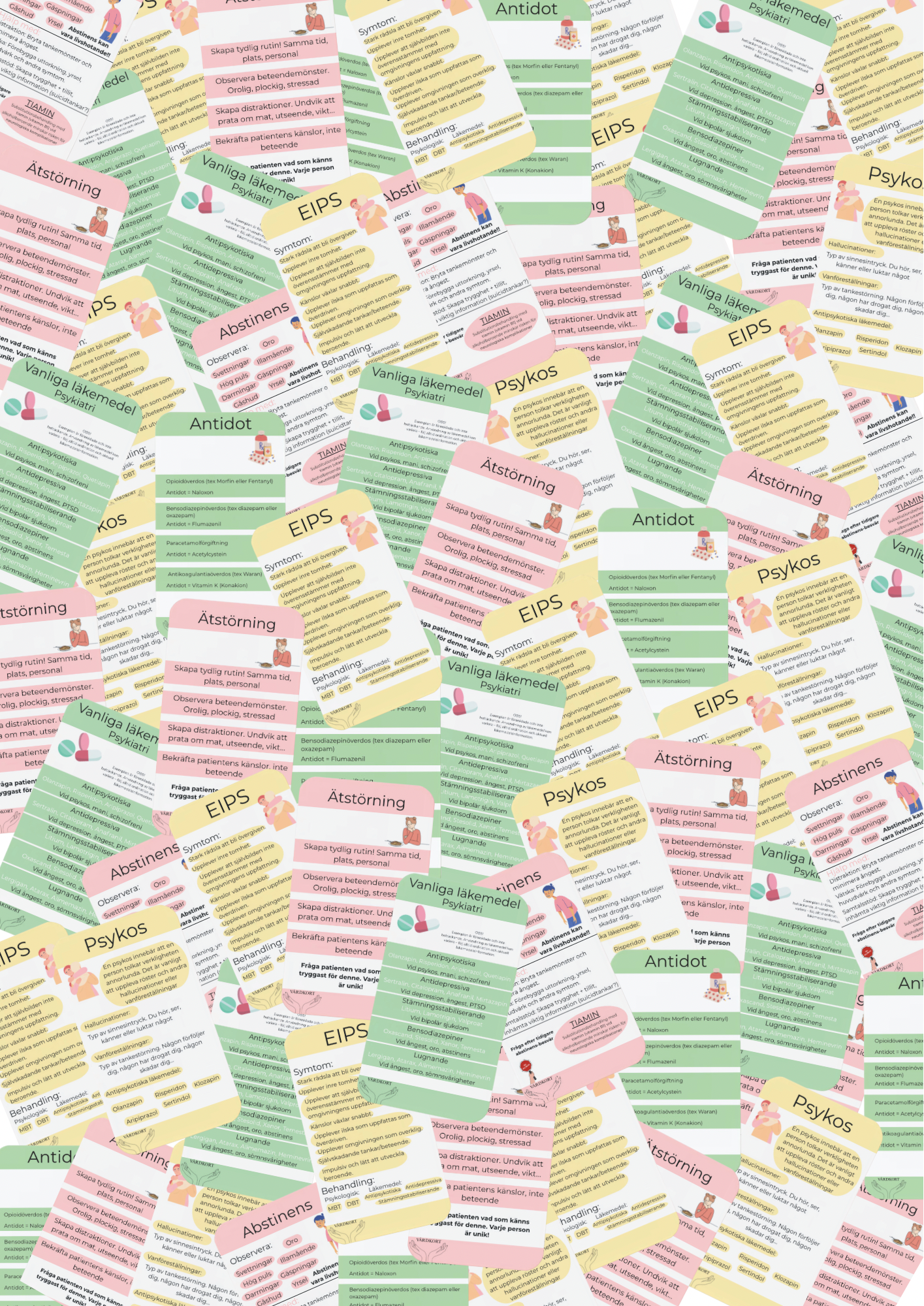 Observera: Dessa kort är lathundar/minnesstöd för vårdpersonal och studenter. Informationen är baserad på nationella riktlinjer och vedertagen litteratur, men kan vara förenklad. Det ersätter aldrig ordination från läkare, lokala vårdrutiner eller gällande behandlingsrekommendationer. Användaren ansvarar alltid för att följa aktuell ordination, lagstiftning och lokala riktlinjer.