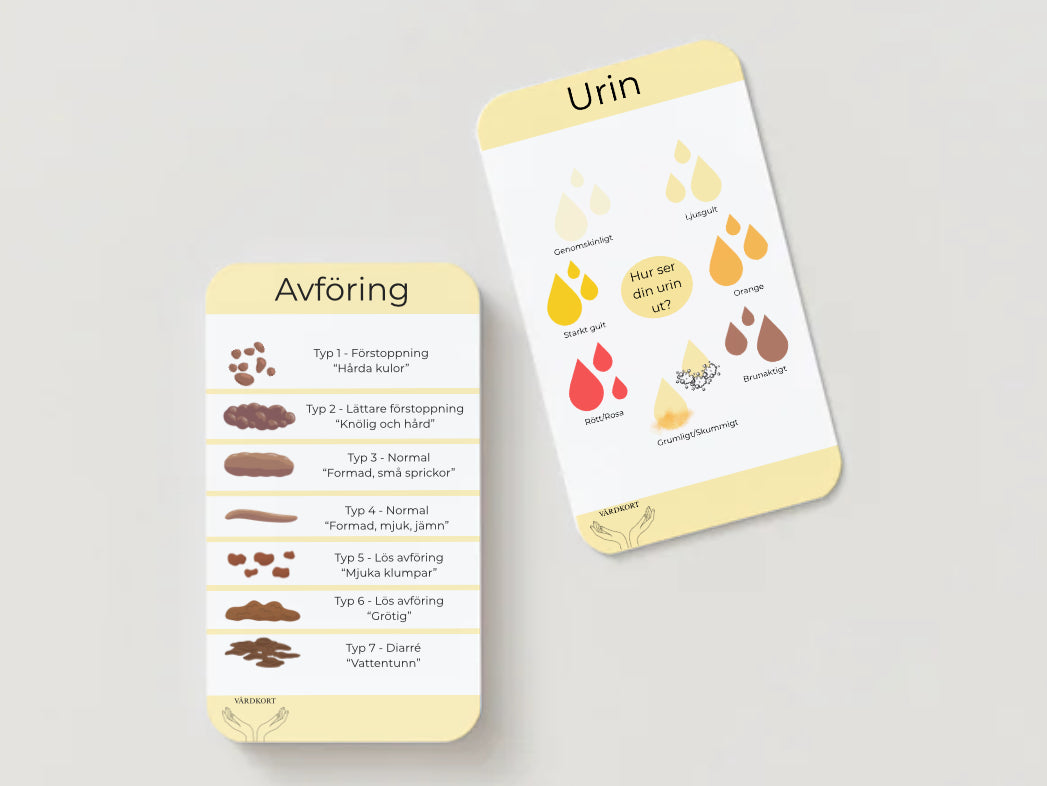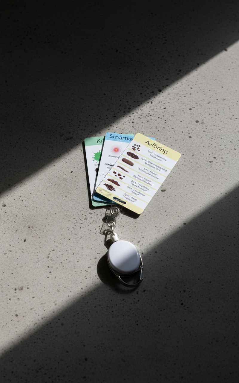 Ett knippe med 3 dubbelsidiga praktiska kort med bildstöd i fickformat, framtagna för att stödja vårdpersonal i akuta och vardagliga situationer. Korten är designade för snabb åtkomst och tydlig översikt - en pålitlig följeslagare på jobbet.